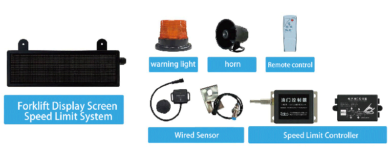 Forklift Display Screen Speed Limit System mainly includes two parts: speed limiter and LED display. The speed limiter is responsible for detecting the speed of the forklift and implementing corresponding speed limiting measures when the speed exceeds the preset value; the LED display is used to show the traveling speed of the forklift in real time.